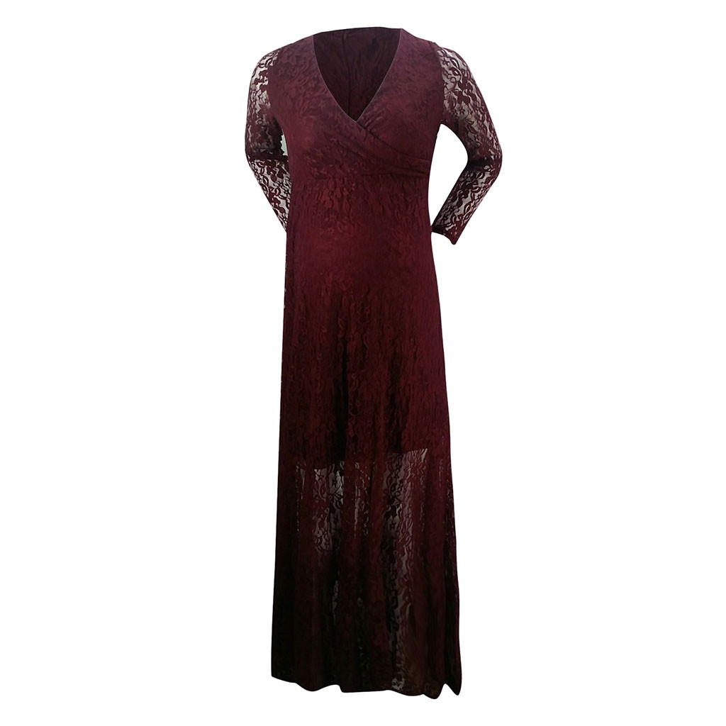 β 1 x V Neck Lace Long Dress (Red Wine, Size XL)