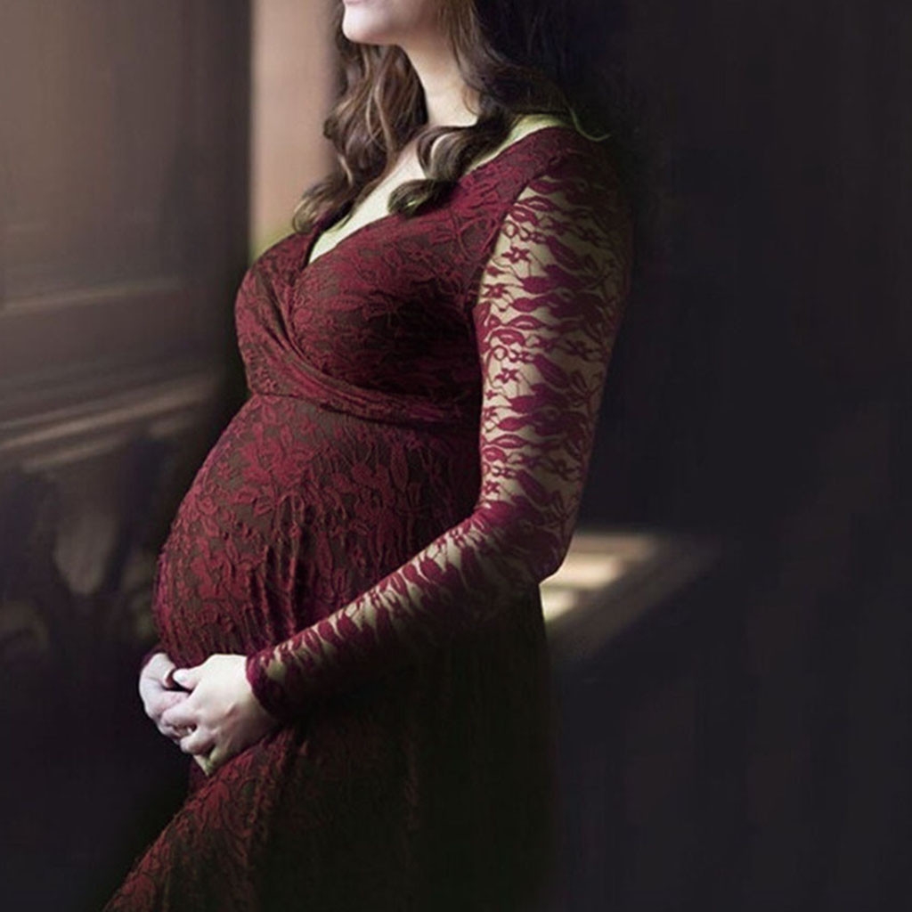 This V Neck Lace Long Dress is the perfect choice for expecting mothers who want to stay stylish and comfortable. Featuring a full-length sleeve design and soft lace detailing, it offers a flattering fit that enhances elegance during pregnancy. The breathable polyester fabric ensures all-day comfort, making it ideal for maternity photoshoots, baby showers, and special occasions.