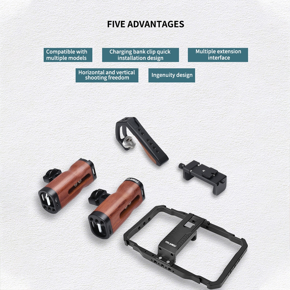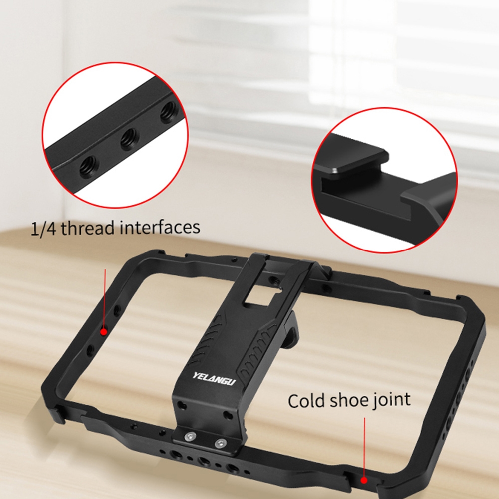 4. The cage frame comes with multiple cold shoes and 1/4 threaded interfaces, which are convenient for external connection and expansion of various accessories, such as microphones, fill lights and other accessories, making the expansion more abundant.