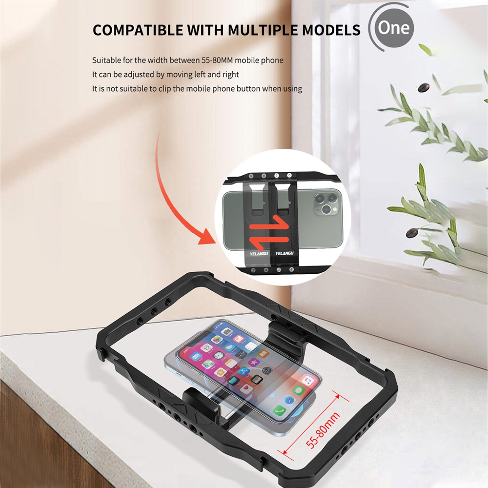 This product is a general-purpose mobile phone rabbit cage, which can hold the mobile phone in various modes to take pictures. It can be held in one hand, two hands, hand-held, and can be installed on a tripod for horizontal and vertical shooting.